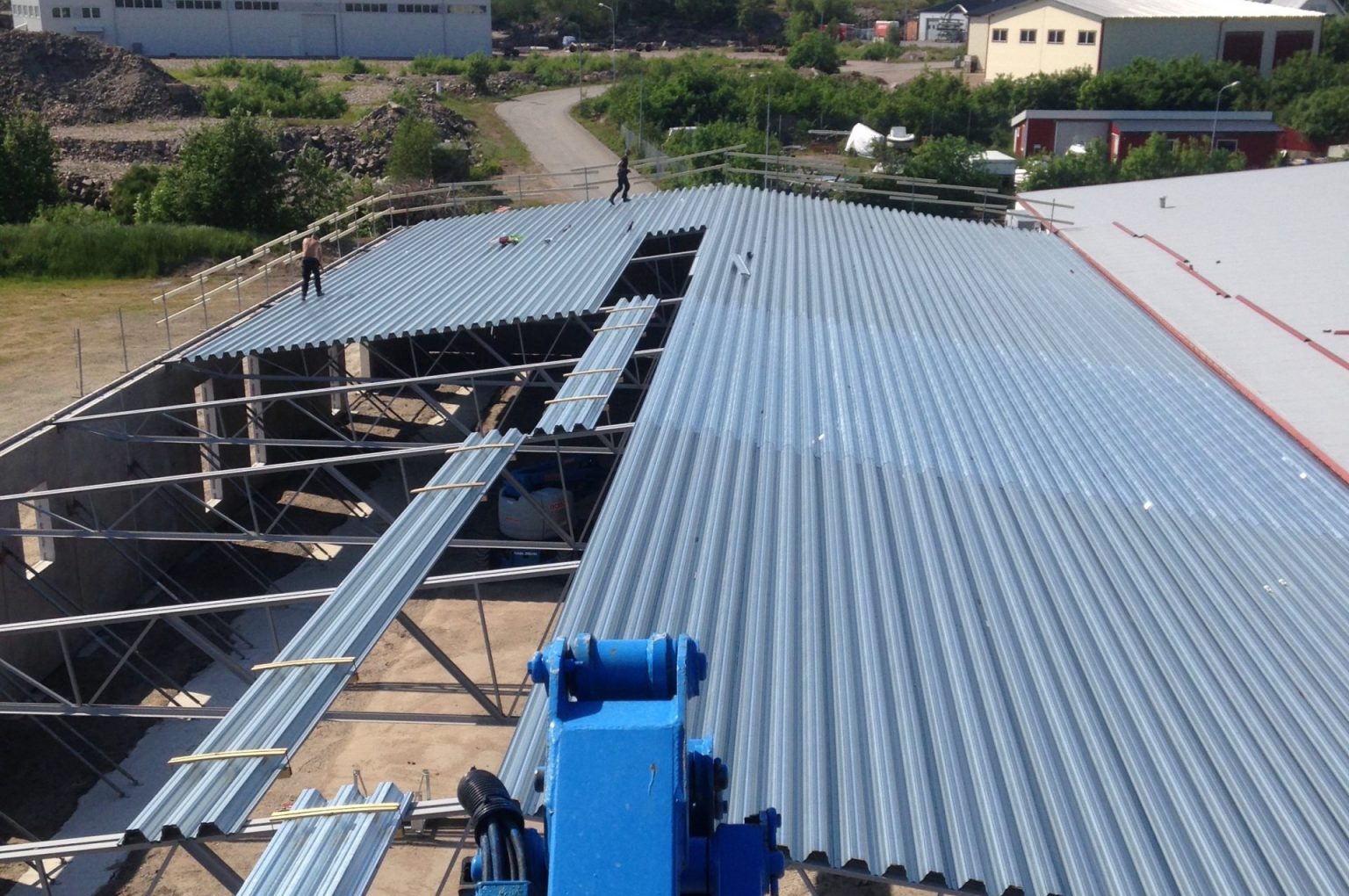 Vi monterar självbärande högprofilstak och erbjuder installation av färdiga taksystem.